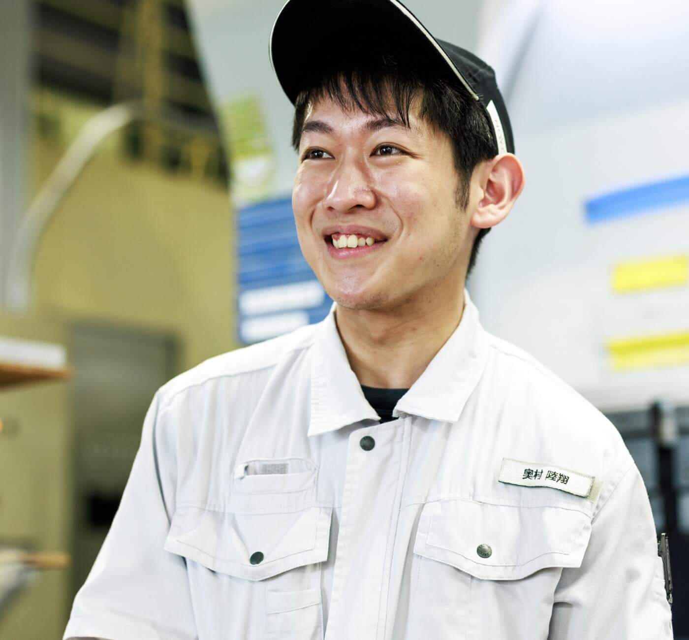 実際の仕事においては、ご希望と適性を考慮し、溶接・板金・組立・生産管理に配属となります。実際に体験してからの配属先の変更も可能です。 今はかっこよく見える先輩も、全員はじめは初心者。初めの一歩、応援します。